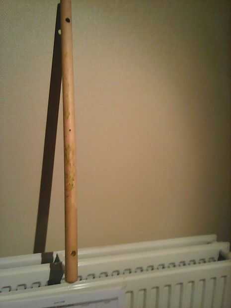 Luego se deben perforar dos agujeros en los lados del palillo (unos 5cm de los bordes).