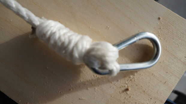 -Tomar 2 cuerdas idénticas y a cada extremo de la cuerda un broche de presión. Hacer un nudo atando con una cuerda de segunda. Por último, fuego los extremos por lo que se cerraron.