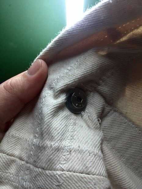 Asegúrese de que en ambos lados de la segunda correa horizontal (que es el más largo desde el centro hasta el final del bucle) tiene algún tipo de medida de seguridad. Utilicé un tornillo y alguna arandela y una tuerca, pero si tiene remaches también hará el truco. Cuando se usa el perno, asegúrese de serrar la parte del perno que todavía se está pegando hacia fuera después de apretar. Si hay algún borde afilado, utilice una lima para suavizar las cosas.