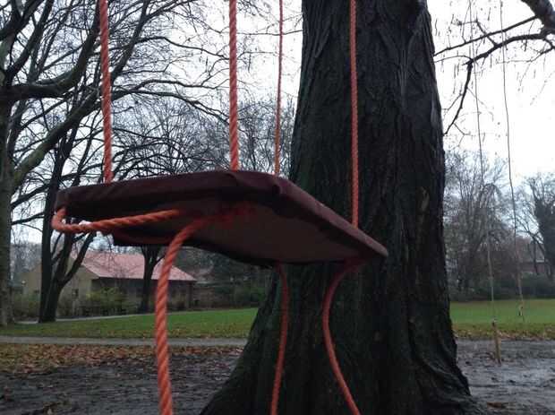 Como tarea para la escuela que tuvimos que hacer un giro, no es sólo algo puedes colgar en tu patio y lo dejas. No, un columpio portátil usted puede tomar con usted cada vez que quiere y puede colgar en cada árbol que se verá en un parque. Otra parte