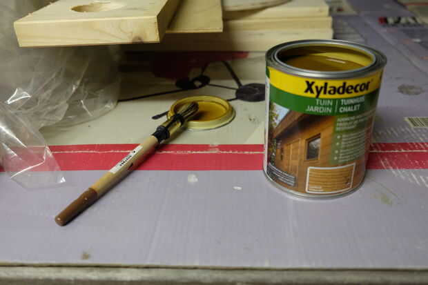 • Para asegurarse de que su swing es resistente a la intemperie, se puede utilizar tinta para madera. Utilice un pincel para aplicar la primera capa de tinta para madera y deje secar durante 16 horas.
