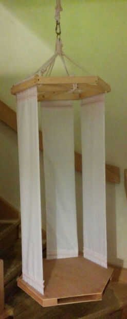 tuvimos que hacer un columpio para un proyecto escolar, el swing sólo podría tener un peso máximo de 5 kg, tuvo que ser portable, así que usted podría llevar alrededor fácilmente y tenía que ser lo suficientemente fuerte como para el adulto promedio