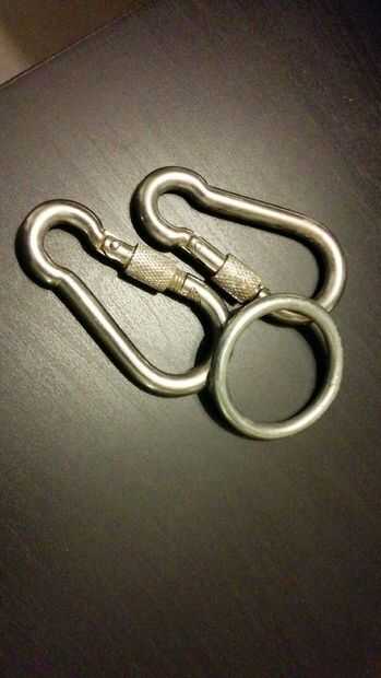 • Gancho de la carabina, 8 mm de espesor, 80 mm por 40 mm.