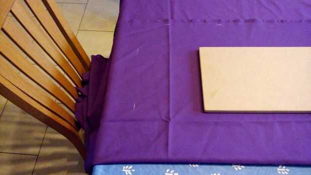 Así que lo primero es que eres tablón de madera sobre la tela necesaria y mida la longitud que desee para usted es swing. El tablón de madera que he usado es un poco más la una silla normal sentado longitud. Utilice la tiza para indicar donde tiene que cortar la tela.