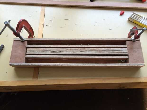 Cuando hayas hecho esto puede añadir las barras laterales (45cmX5.4cm rectángulos) y el apoyo extra (35cmX5.4cm)