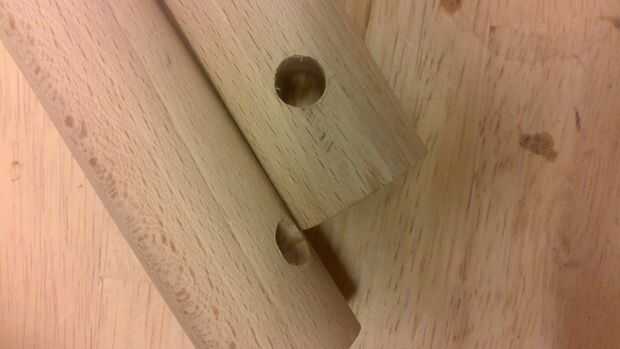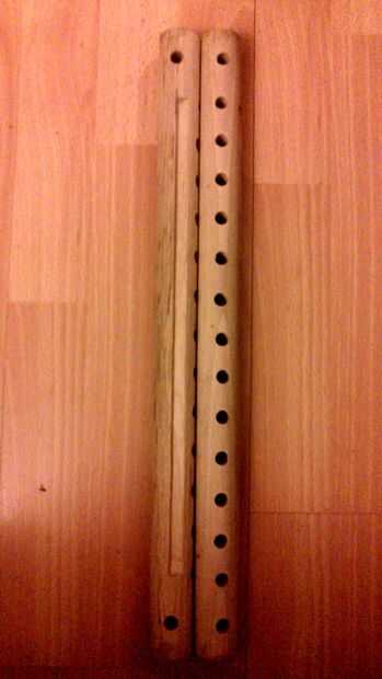 Primer palo: dos agujeros horizontales (1, 5cm de cada lado)