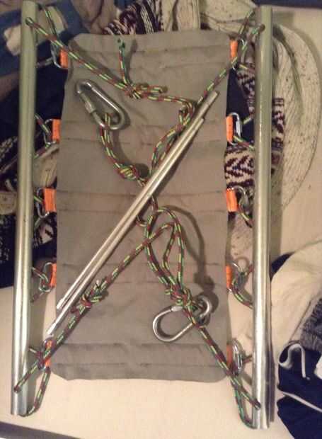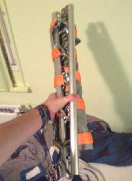 Para conseguir el swing juntos, que acaba de lanzar las cuerdas de los mosquetones y tire de la correa, la barra de madera vendrá abajo supereasy. Rollo de todo (imagen 3,4,5) y listo! Si desea, puede hacer una bolsita para ella (última imagen).