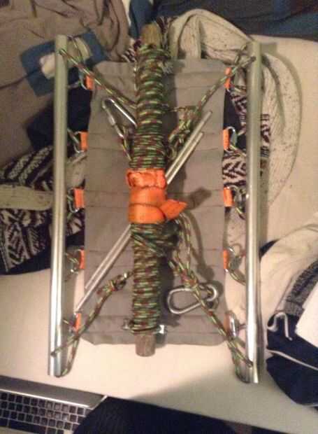 Si has encontrado la rama buena, tomar la barra de madera con las cuerdas y la cinta y tirarla sobre la rama. Agarras la correa y tire de él hasta el punto donde los extremos de la cuerda y la barra igualan unos de otros.