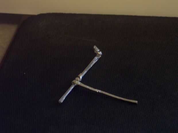 Tomar dos palos rectos y cruzarlos como usted está formando un capital "A" y uno del es la pieza central. Utilizar cerca de un tercio de la pieza transversal y envolver en una espiral apretada hasta el lado derecho de la "A".