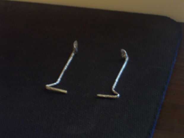Sobre una pulgada y media arriba de la parte inferior de la recta final, hacer un pliegue de 45 grados. Este pliegue debe ser en un plano perpendicular a la dirección del conector de la barra transversal. En otras palabras - si pones un palo en el conector del extremo apuntando hacia arriba, este doblez debe hacerse en el plano tierra - izquierda o derecha. Si el pliegue hace que el extremo recto hacia arriba o hacia abajo verticalmente, has doblado al revés.