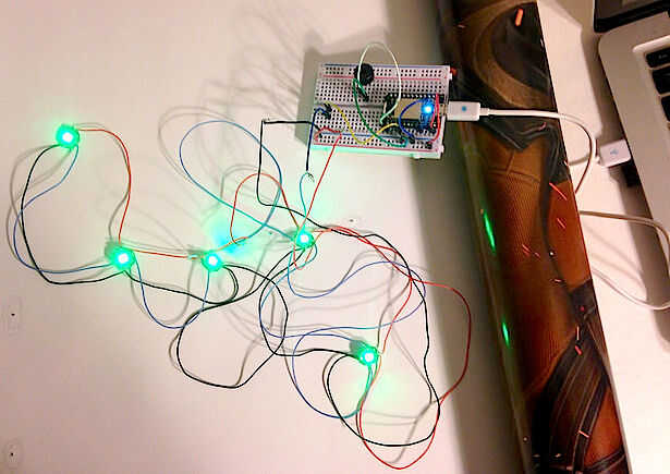 Conectar la ve rojo cable de la NeoPixels a de + la + tren ve pan y el cable negro con el carril - ve de la Junta de pan.