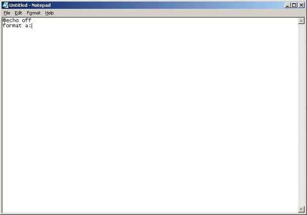 3 guardar como format.bat (en "tipo de archivo" seleccionas todos los archivos y en "codificación" selecciona ANSI sólo!!!!!!) Guardar como todo lo que quieras ya que su extensión es .bat