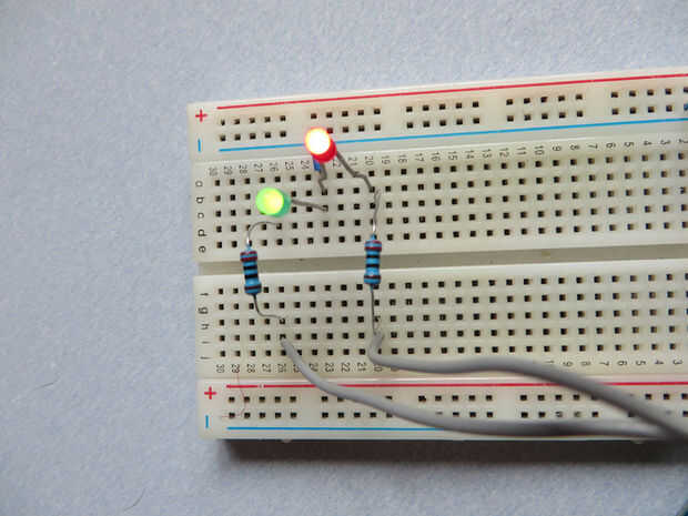 2 Led con resistencias de 220 ohmios