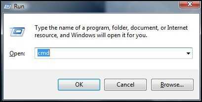 Modo con este comando puedo apagar el equipo por su nombre o por su dirección IP. Así que lo primero que voy a hacer es abrir el símbolo del sistema, hacerlo haciendo clic en ejecutar. Para usuarios de vista puede mantener pulsada la tecla de Windows y presione R. Pero hay un problema. El símbolo del sistema tiene que funcionar como un administrador para funcione también para su mejor. Pero de este comando, debe ser fino. Así basta con teclear CMD en ejecutar y presione Entrar o "OK".