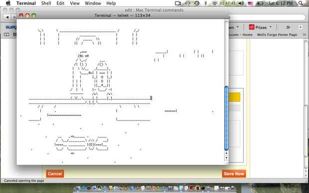 Hay muchos comandos ocultos en el entorno de la Terminal de Mac que usted puede tener diversión con. Usted aprenderá a utilizar algunos en este instructable.Paso 1: Terminal Terminal es el indicador de línea de commnad para Mac OS. Dentro del program