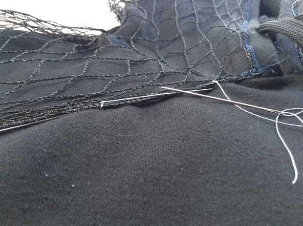 Ahora necesitamos a nuestra red en nuestro hoodie (ligamos la arpillera a esto) (red de pesca náutica es demasiado caro; Yo usé estanque neto que deja peces saltando y saltando en los gatos!)