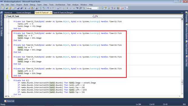 el tanque azul hice lo mismo excepto en diferentes temporizadores así en form2 diseño seleccione temporizadores 13-16 y pulsar la tecla enter, agregue el código siguiente a cada uno: