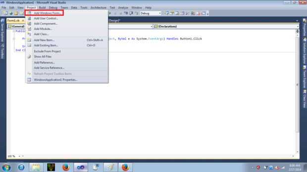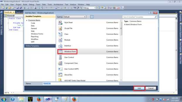 para agregar una nueva forma de ir a la opción de tira de menú "proyecto" y seleccione "Agregar Windows Form" y seleccione "Windows Form" el nombre lo que desee y haga clic en "agregar"