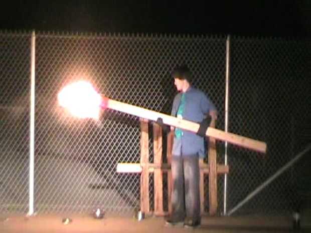 1. como se puede ver en el video no esperaba la llama a ser grande y tuvo que levantarse al partido en el aire para disminuir el intenso calor que salió de él. Para evitar conseguir al partido más 4 pies lejos de la punta quemada.