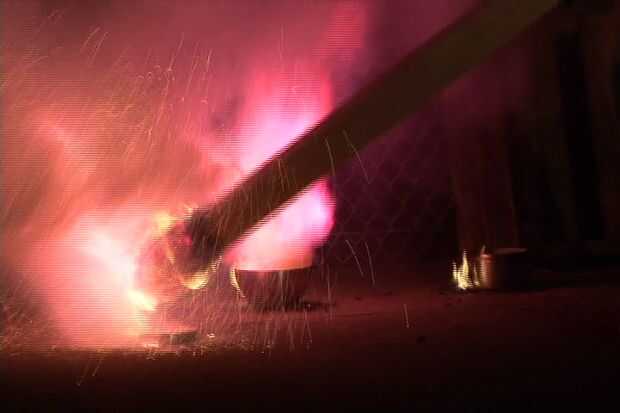 Es una buena idea tener algo a la luz con el partido de gigante, así que pusimos algunos polvo humo y pólvora hacia fuera en tazas de metal.