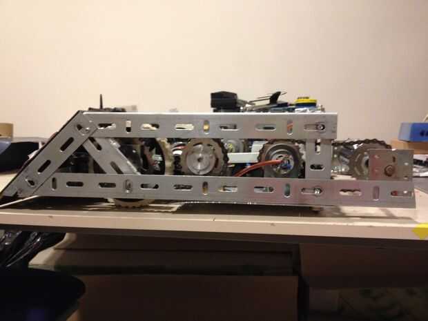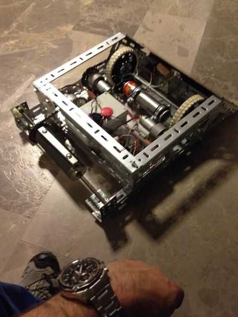 A continuación, crear el marco interno de nuestro robot con L en forma de metales. altura del robot es de 15 cm. revisarlo y empezar a construirlo. Fijarlos junto con nuestros sujetadores hongo M8 y tornillos. Ver las fotos 5-6-7-8-9-10