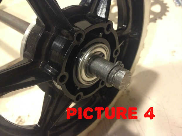 Ahora que en el paso anterior utilizar anillos de retención para estabilizar la barra de hierro en el chasis. Abrir el canal para estos anillos como ves en la imagen 3. Luego poner anillos de primera como veis en la foto 4.
