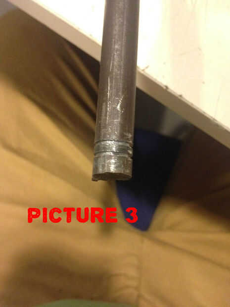 Llevarlas y abrir un agujero en cada uno de ellos. Estos agujeros deben ser simétricos en ambos y estos agujeros llevará nuestra barra de hierro. En foto usted puede ver dos agujeros en ellos. La razón era ajustar la altura. Pero un agujero es suficiente para usted. Ajustar su altura y abrir los orificios. (Usted necesitará acortar un lado de la forma de L)