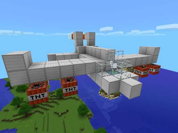 esto es cómo construir un jet cool en Minecraft!Paso 1: Las ruedas Colocar una lana negra en alguna parte. Luego de 5 cuadras detrás de eso, coloque un bloque de lana negra a cada lado de la fila de bloque de la primera.Paso 2: Haga una Base!! Bofeta