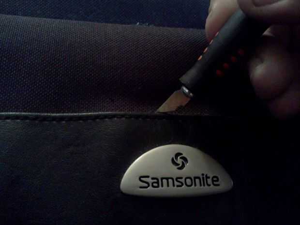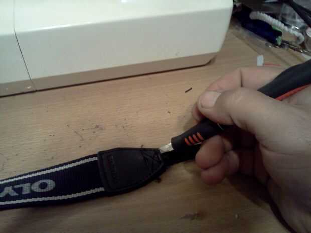 En segundo lugar iniciar puling muy duro en una esquina para encontrar una puntada toma el punto de su manía cuchillo y corte la rosca expuesta, punta una vez que tengas los hilos pocos primer corte palillo el dedo en el nuevo agujero que acaba de hacer y empezar tirando muy duro exponer más hilo para cortar.