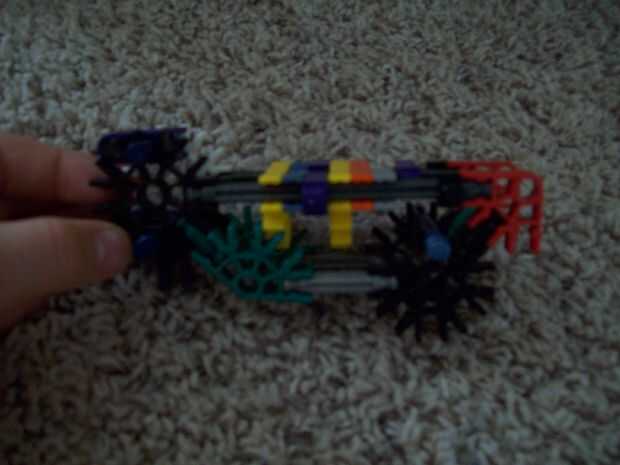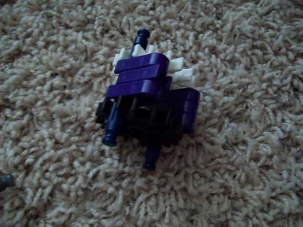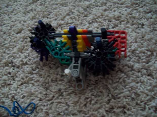 aquí es: mi cañón. Dispara misiles grandes y les tira duro. Es accionado por 48 gomas, atados en 8 cadenas de 6. Es 2 pies de ancho (en la proa) y 5 pies de largo.  Tiene un rango promedio de cerca de 100 pies de la posición de reposo. Utiliza un mon