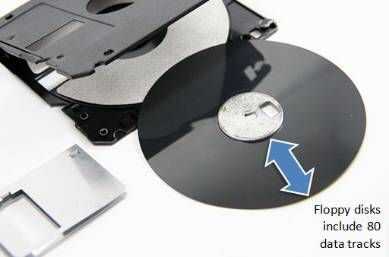 loppy discos están hechos de una pieza delgada de plástico recubierta de un material ferromagnético, que es magnetizado para retener datos. Más específicamente, el disco se divide en 80 pistas de datos dispuestas en círculos concéntricos, como los anillos de un árbol.