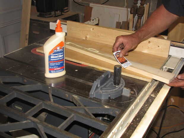 RIP una pulgada la otra 1 x 4 y fije en el empalme de la esquina por el 1 x 4 y la madera contrachapada. Use tornillos y pegamento de madera. Esto dramáticamente aumentar la fuerza de la articulación y formar un pequeño estante que descansan en las correas. Esta plataforma se llama, el bloque.