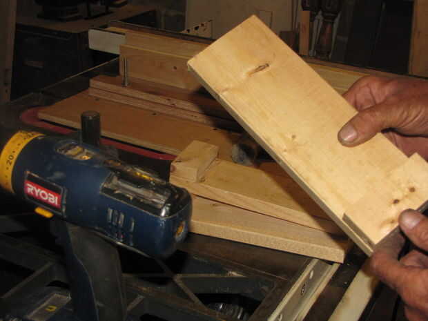 También cortar las tres piezas de 1 x 4 sobre 1"- 1½". Fije estas pequeñas piezas a un borde de cada una de las correas. Esto le permitirá trabajar con material más fino.
