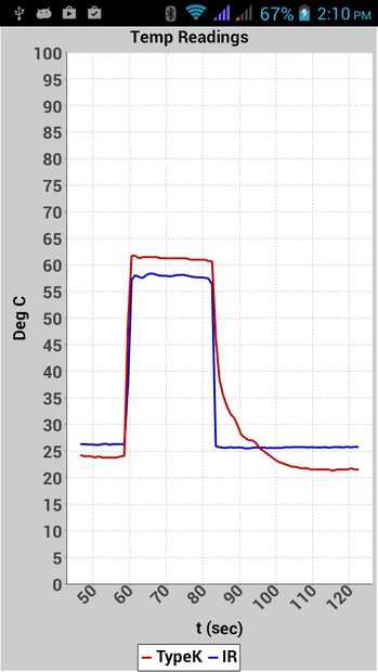 El módulo IR es una medida de temperatura sin contacto, pero el promedio es la temperatura en su campo de visión, mientras que el termopar tipo K tiene una gama más grande pero debe ser con buen contacto térmico a la una lectura confiable. Este proyecto es batería para que el termopar de tipo K puede estar conectado a tierra sin causar problema.