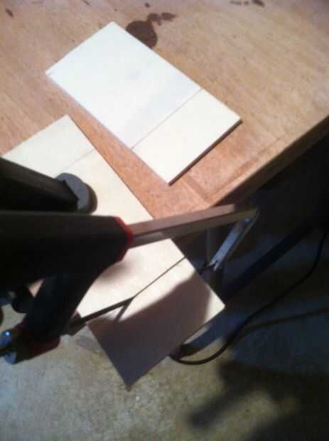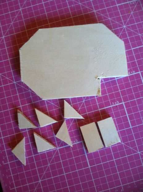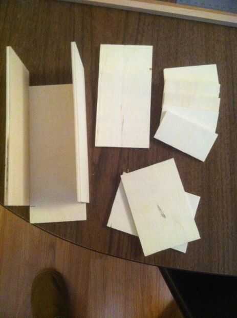 Tiempo para los cortes. Tomar los tres mejores buscando listones y apártelos para la espalda y ambos lados de la torre. Mida y corte 1 1/2" de los extremos de los otros tres listones (uno en un tiempo o una pila de ellos y una vez cortado). Aquellos serán los listones interiores. Tomar el mejor en busca de los tres listones y colóquelo a un lado para el frente. Corte otra 1 1/2" del otro extremo de la izquierda dos listones (los será la parte superior e inferior). Corte las esquinas de la madera restante en tres lados (para un total de 6 triángulos para su uso como en re llaves de listón) y cortar un rectángulo de 1 "x 5/8" desde el extremo restante de 2 patas de la torre.