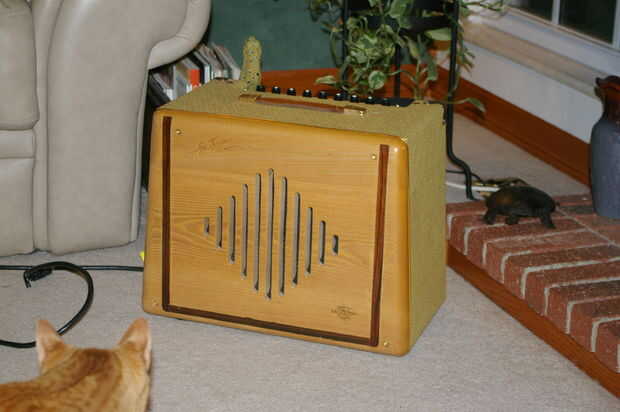 estoy muy contento con cómo esto resultó.  El amplificador suena genial y todavía se ve bien en la sala de estar.  Lo principal que iba hacer diferente es no añadir el ventilador y sólo tal vez tienen algún tipo de ventilación en su lugar.  Pesa un poco más, pero nada significativo para un amplificador de este tamaño.  El último paso es vender las agallas de amplificador/altavoz/reverb tanque Turser y el gabinete Peavey vacíelo para recuperar algunos de mis gastos.