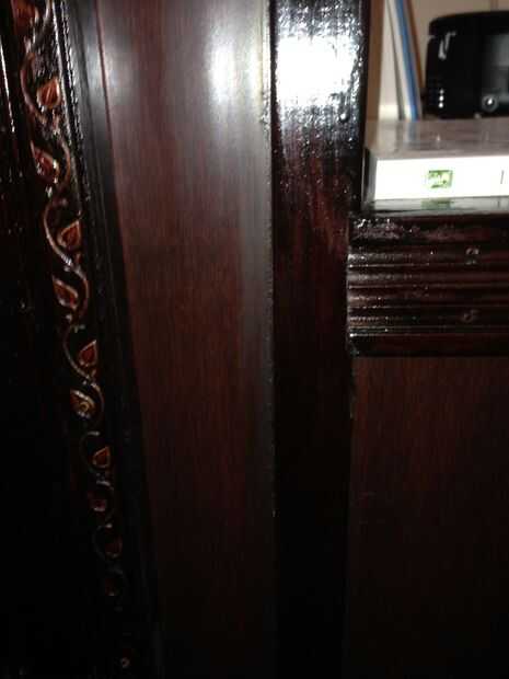 sí, la coloración. ¿Sabes el lado hacia abajo usando el acabado del piso que está en liquidación? no hay manchas premezcladas que coincidan. Traté Ace de Lowe's, HD,... lo más cercano consiguió fue una variante de caoba que estaba demasiado roja.