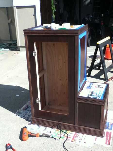 Volví a mis raíces de diseño de teatro y me recordó algunas teoría del color. Con colorante alimenticio (sí, acaba de decir que) he mezclado y probar unas 20 combinaciones de la mancha caoba sobre un tratamiento de colorante de alimento.