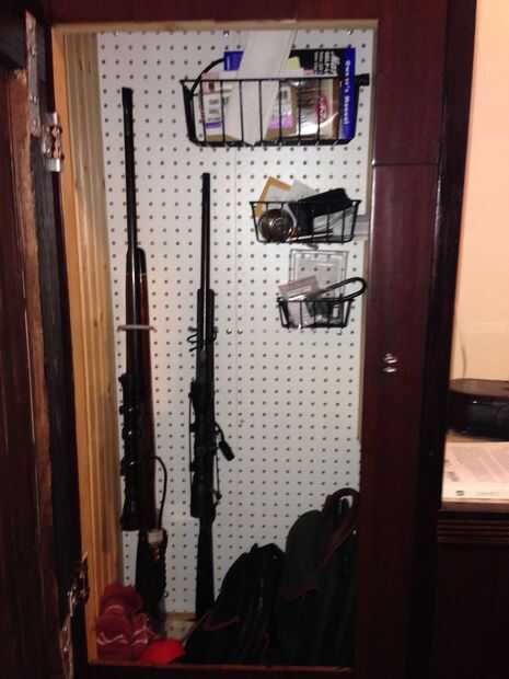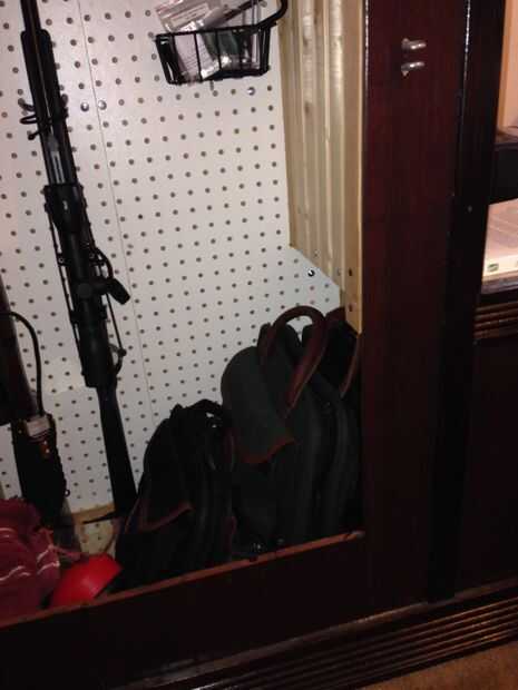 Además, tenga en cuenta que los rifles están encadenados en el lugar. Si alguien logró que dentro del gabinete, mejor tener un cortador de perno con ellos.