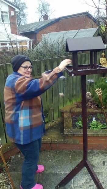 Mi tía jane no puede tener acceso fácilmente a su tabla de aves para limpiar y rellenar debido a desarrollar artritis en hombros.