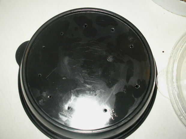 luego un anillo de agujeros en la parte inferior de la parte inferior del envase de alimento plástico