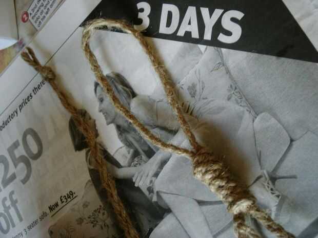 La soga fue realizada utilizando cordeles jardín marrón. Un solo filamento miró un poco endeble, para que 3 hebras fueron platted juntos para formar una cuerda más proporcionada. Hay un montón de guías en la red que describen atando una soga en mucho más detalle que nos podríamos presentar aquí, así poco no es mostrado.
