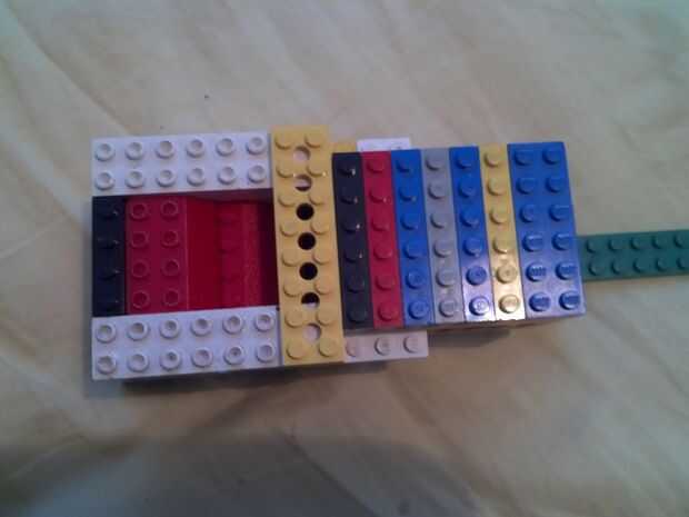 Este es mi dock cargador de iphone. Ha hecho lego de la forma como muchos otros pero este uno no utiliza pegamento y no destruir cualquier lego o los cables. La única parte de lego no es dos pequeños trozos de cinta adhesiva. Es fuerte y portátil y p