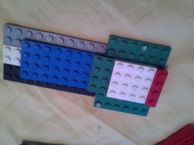 Poner un pedazo de 4 x 4 al lado del pedazo de 4 x 2 verde. luego poner una viga de 4 x 1 en el borde. Esto hace una ligera pendiente.