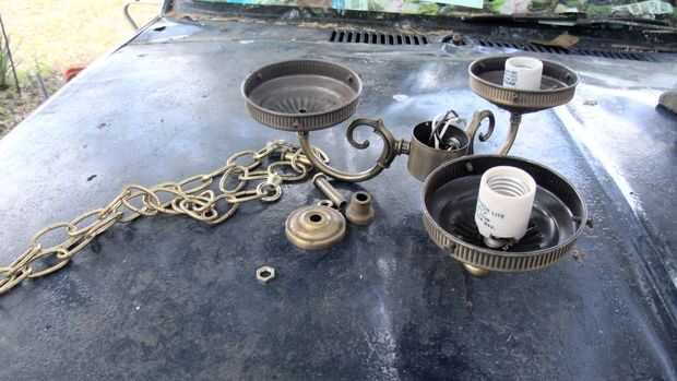Surgió una especie de lámpara de luz 3 de polos y lo de 2 lámparas de piso así como algunas piezas extras de mi cubo de la lámpara, también cavado un gancho de jardín