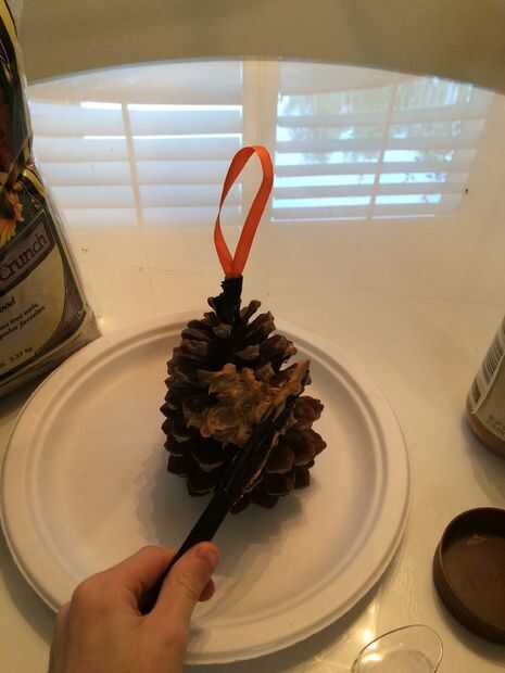 Tomar el cuchillo y la mantequilla de maní alrededor de la piña. Asegúrese de rellenar los agujeros.