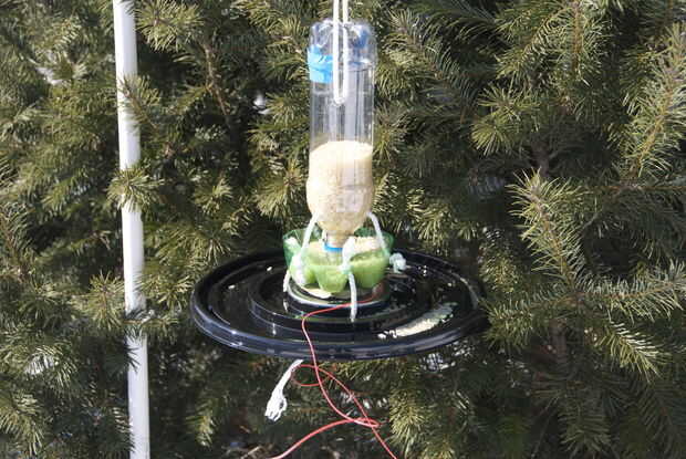 Comedero de alambre y botella de 2 litrosAquí es una forma sencilla de reutilizar una botella de 2 litros para proporcionar un 'buffet' para nuestros amigos con plumas finas.Comedero de 2 litros tiene alambre de acero y una botella de 2 litros y a tr