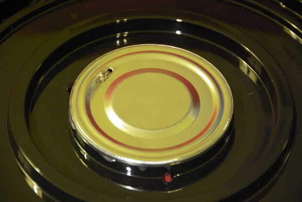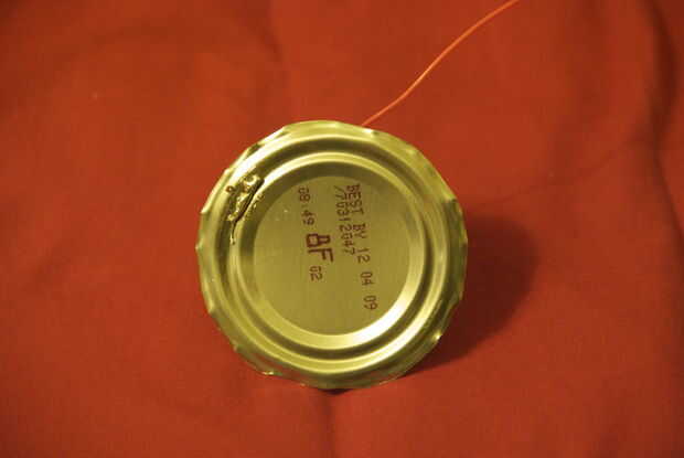 En primer lugar, cortar dos trozos de alambre de 8-12 pulgadas de largo y tira de ambos extremos de su aislamiento. Asegurándose de no cortarse, perfore un pequeño agujero y montar un cable a través de él. Cuidadosamente, soldado o pegamento en su lugar. Si es posible soldado porque el pegamento cubrirá algunos de los metales y la alarma no funciona así. Luego, doble el borde de la lata un poco por lo que si toca la bandeja de la semilla con el lado no siguió ni pegados, apuntará el borde de la bandeja de la semilla. Después de eso, pegar la lata en la parte inferior de la bandeja de la semilla con la parte doblada apuntando lejos de la bandeja. A continuación, perfore un agujero en la otra parte de la lata y otro en la plataforma de plástico para cuando realices la parte lata entre los otros tres agujeros en la plataforma los dos agujeros nuevos pueden preparar. Luego, tomar el otro cable y ponerlo a través del orificio recién taladrado en la lata. Otra vez, soldado/pegamento lo en su lugar. Conecte el otro extremo del cable nuevamente siguió/pegar a través del orificio en el plástico para el lado del agujero lo pones en es lo que las aves se destacan en. Luego, pegue la parte lata al plástico por lo que es entre los otros tres agujeros.