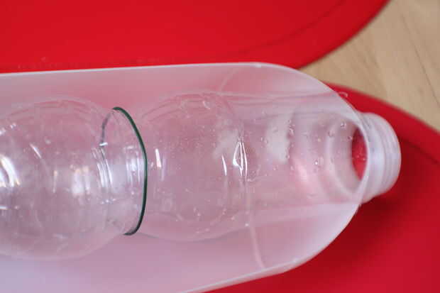 Comedero para pájaros construida reciclado de objetos:Botella de 2L popTapa de tina de helado de 2Ltornillo de la cubierta 1 pulgadaenvases de plástico de bombilla circularalambre1. en la parte inferior de la botella, cortar pequeños agujeros de tama