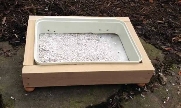 Usted ahora está listo para usar su alimentador. Se puede utilizar para poner semillas o cáscaras de la ostra de tierra (ver foto), que las aves necesitan para producir huevos con cáscaras fuertes. Tenga en cuenta que dependiendo el grosor de las cáscaras, algunas partículas finas pueden escaparse hacia fuera. Asegúrese de limpiar y desinfectar la bandeja periódicamente con el fin de evitar la propagación de enfermedades entre las aves. Usted puede desinfectar lavándolos en una solución de 9 partes de agua caliente y una parte de lejía. ¡ Disfrute!